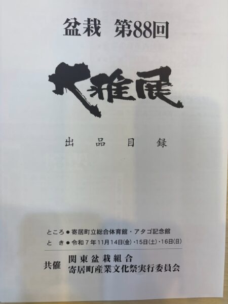 2025年11月14日 / 最終更新日 : 2025年11月14日 サイト管理者 活動報告 盆栽 第88回 大雅展 埼玉県寄居総合体育館で盆栽展である第88回大雅展が14日から16日まで開催されています。 日本盆栽協会会長として参加しました。 埼玉は盆栽としても有名なところです。
